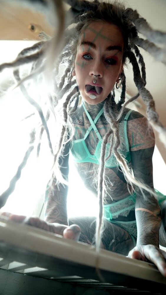 A heavily tattooed alternative dreadhead.