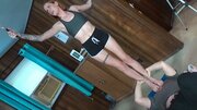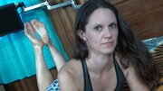 This athletic fitness trainer and gymnast, Linda Byrd, has some strong calves and shapely soles!