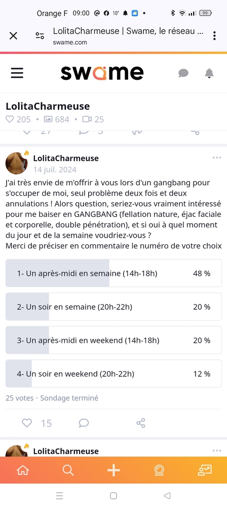 N'oubliez pas de vous inscrire pour venir profiter de mon corps samedi encore 24...