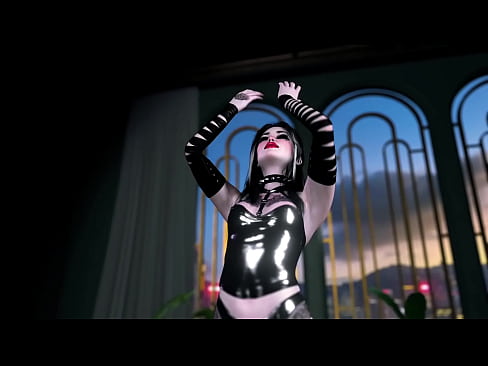 Young goth girl in sexy latex outfit shows off her pale tattooed body