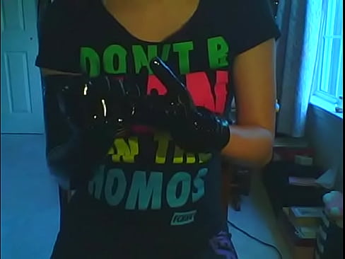 Girl is putting on the latex gloves